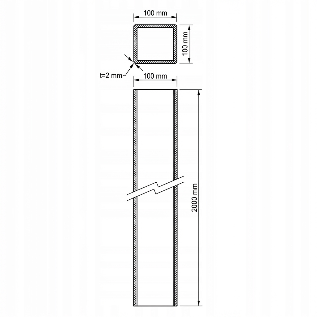 - Tvärsnitt: 100×100 mm (fyrkantig profil)