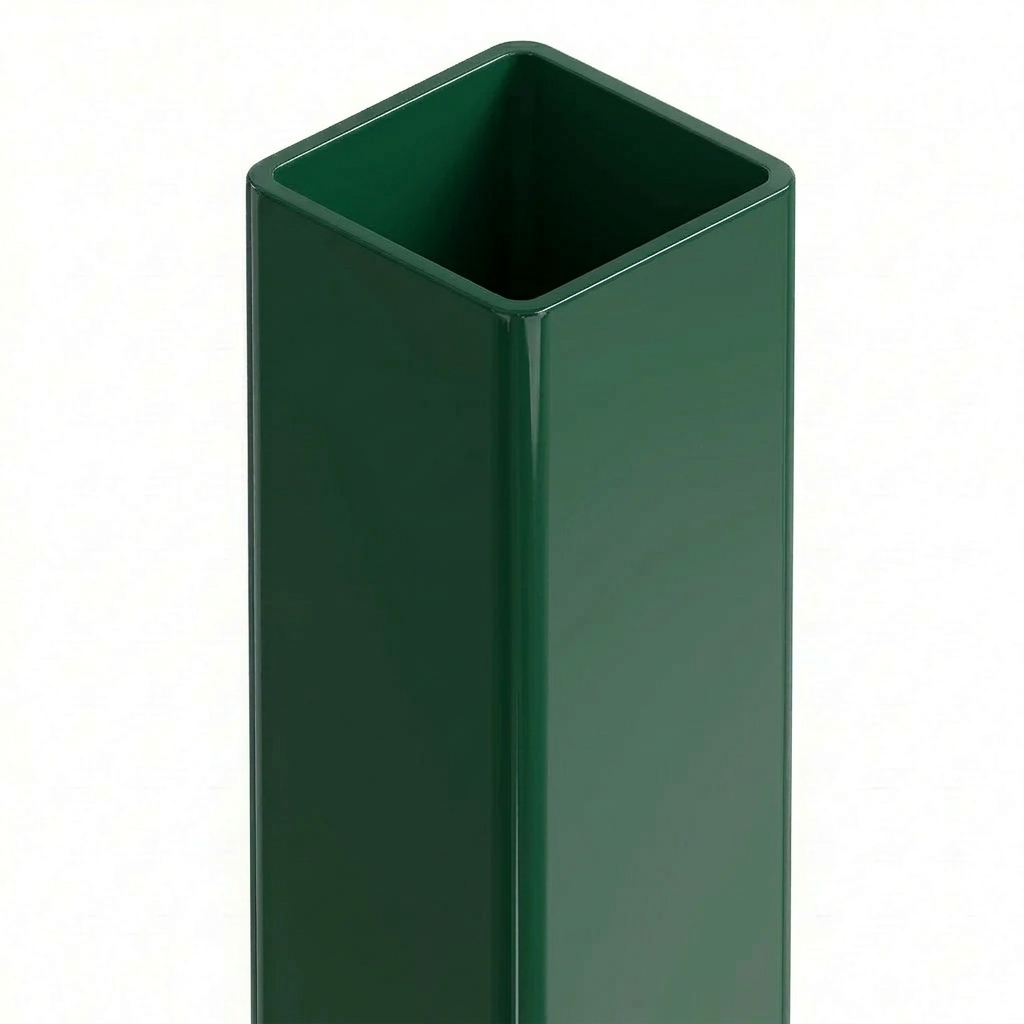 Stängselstolpe 100×100×3 mm i grön färg RAL 6005 är ett förstärkt bärelement avsett för konstruktion av staket med vertikala stänger och paneler — både för privat och industriell användning. Tillverkad av fyrkantig stålprofil med tjockare vägg 3 mm, säkerställer den förbättrad styvhet och bärförmåga för hela stängslets konstruktion.