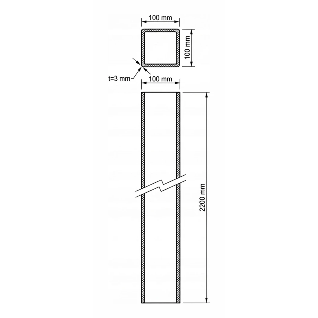 Tvärsnittet 100×100 mm i kombination med väggtjockleken 3,0 mm gör att stolpen utmärkt fungerar som stöd för tunga stängselsektioner med vertikala stänger och paneler. Den ökade väggtjockleken jämfört med standardversioner på 2 mm översätts till högre mekanisk hållfasthet — särskilt viktigt vid stora spann, på platser utsatta för starka vindlaster eller vid industriella tillämpningar.