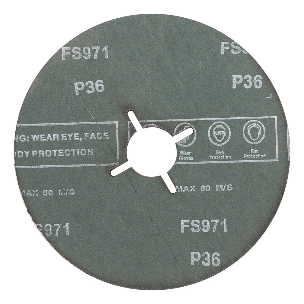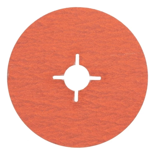 Den grova kornstorleken P36 säkerställer snabb materialaverkan och fungerar utmärkt där arbetstempo är viktigt – vid avlägsnande av svetsfogar, tjockare rostlager samt skarpa grader efter kapning. Skivan är kompatibel med standard vinkelslipare 125 mm utrustade med stödtallerkar för fiberslipskivor.