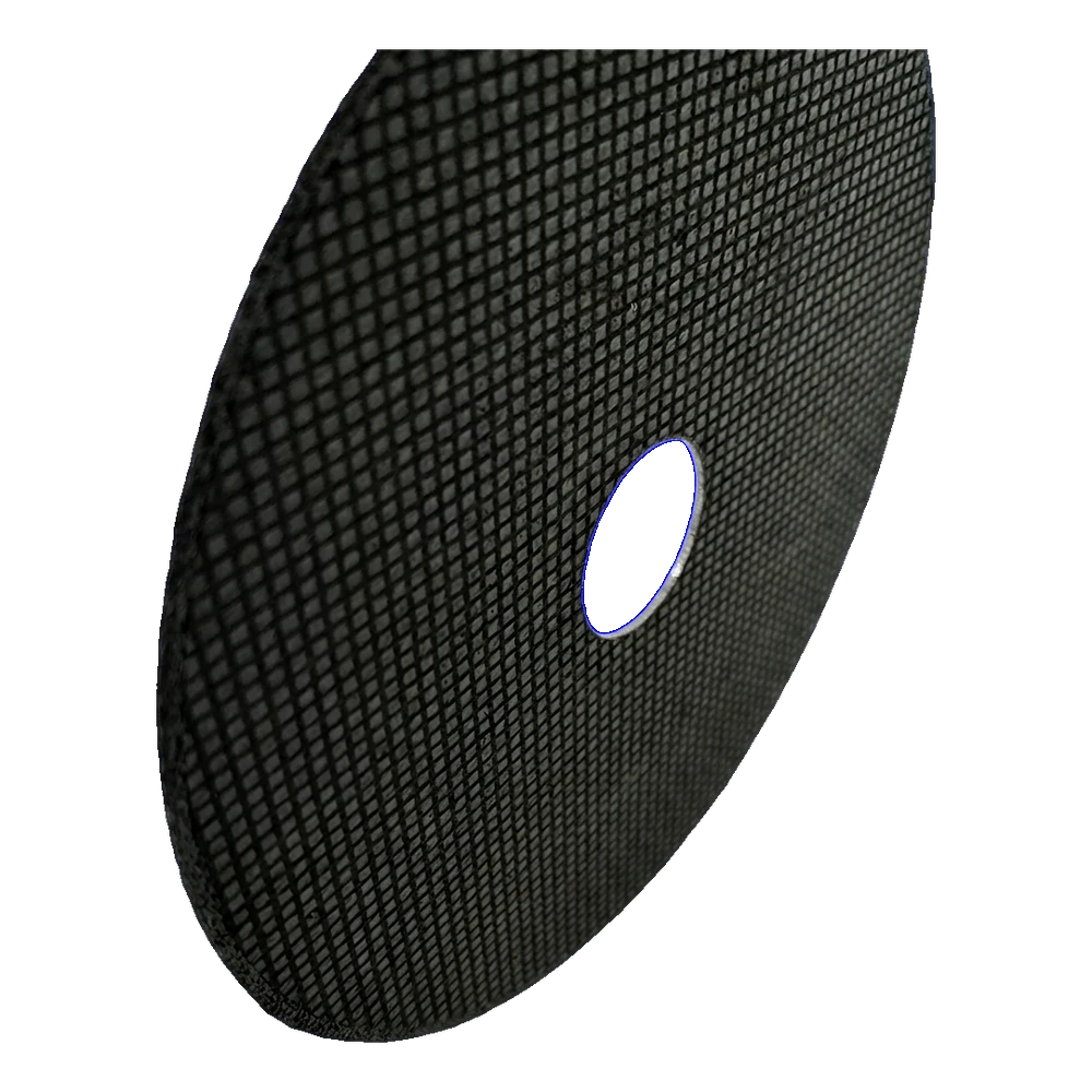 Skiva av typ 41 (platt) med korundslipmedel med kornstorlek 46 och förhöjd hårdhet T (mycket hård) garanterar mångårig, repeterbar kapningseffekt även vid intensiv användning. Bindemedel av syntetiska hartser förstärkta med fiber säkerställer utmärkt stabilitet för skivan under arbete med höga varvtal, och den inbyggda armeringen av glasfibernät — synlig på baksidan av skivan — ökar motståndet mot sprickor och användarens säkerhet.