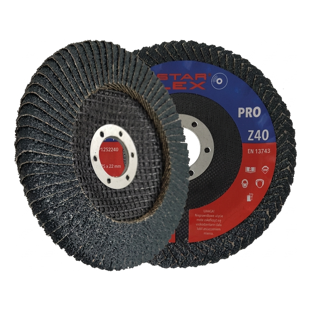 Starflex PRO Z40 är en professionell lamellskiva som är speciellt konstruerad för snabb och precis slipning av svetsskarvar. Tack vare den koniska konstruktionen av typ T27 anpassar sig skivan perfekt till inre hörn och svåråtkomliga ställen, vilket gör det möjligt att uppnå en slät ytfinish utan att skära i det bearbetade elementet. Produkten är avsedd för arbete med både kolstål och rostfritt stål (INOX) samt andra metaller — ett verktyg för många material på byggplatsen eller i verkstaden.