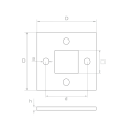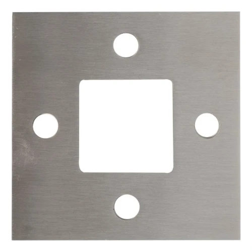 Fyrkantig stolpbas för räcke avsedd för insvetsning, dedikerad till stolpsystem 40×40 mm. Tillverkad av rostfritt stål AISI 304 med satinfinish, säkerställer solid och estetisk fästning av räckestolpen till underlaget. Fyra monteringshål möjliggör säker fastskruvning av basen, och det centrala fyrkantiga hålet tillåter precis placering och hopsvetsning av stolpen.