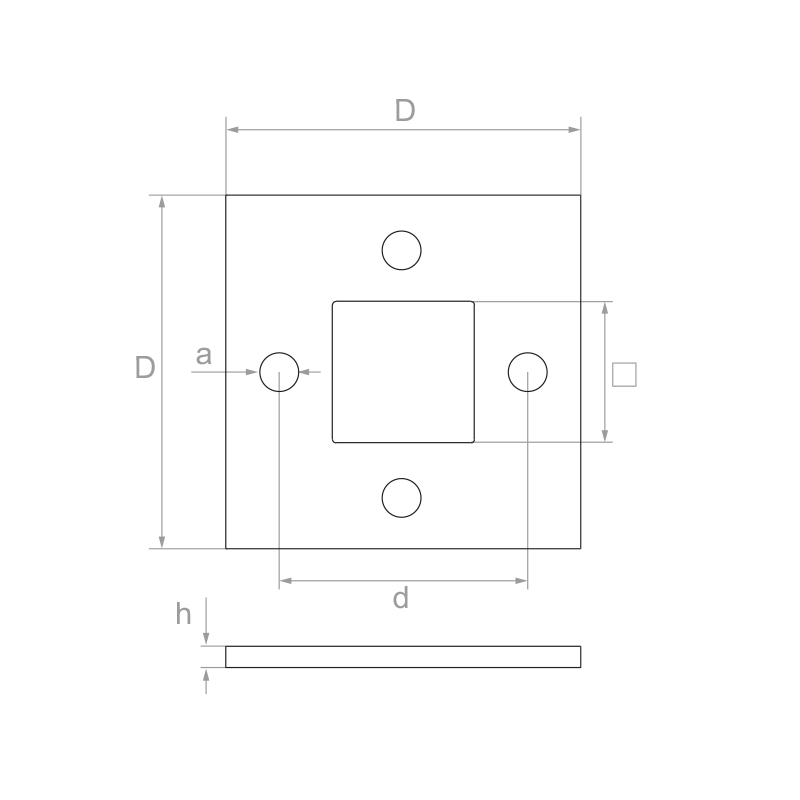 - Centralt hål (fyrkantigt): 40×40 mm