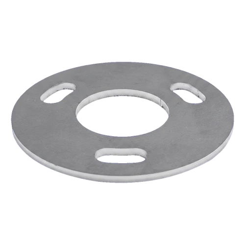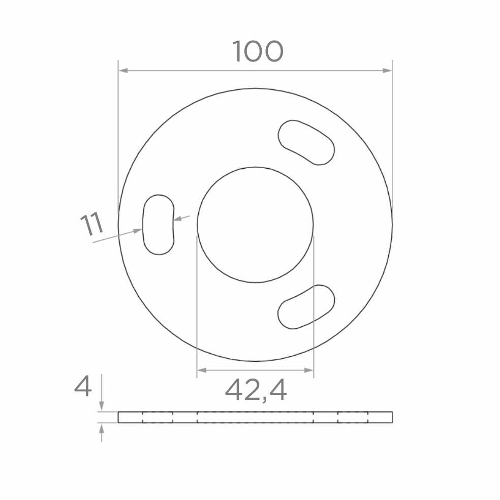 Rund stolpfot för insvetsning avsedd för montering av räckstolpar med diameter 42,4 mm. Robust konstruktionselement som säkerställer stabilitet och hållfasthet för hela räckkonstruktionen i rostfritt stål. Tack vare tre ovala monteringshål (långhål) möjliggör foten precis justering av förankringsskruvarnas position, vilket avsevärt underlättar montering på ojämnt underlag.