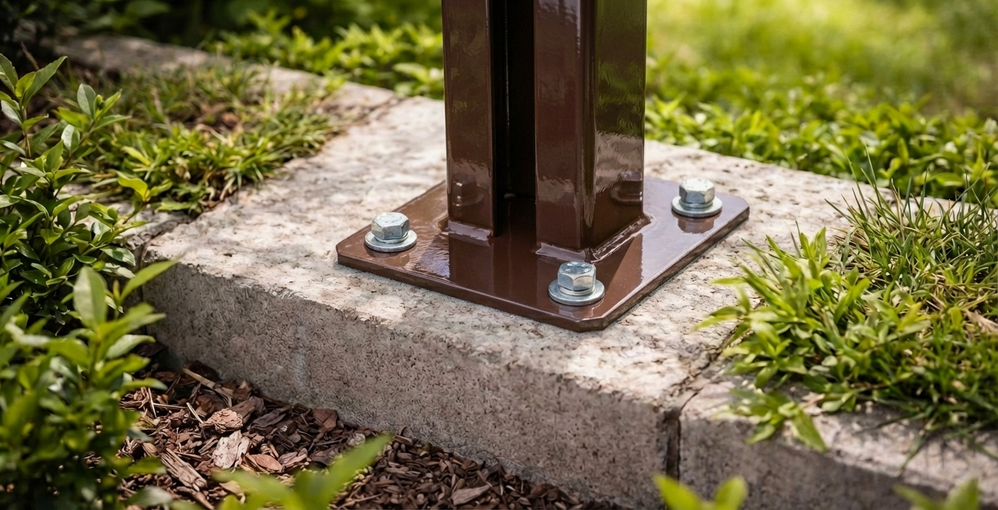 Stolpfot för stängselstolpe 60x40 mm – galvaniserad och pulverlackerad RAL 8017