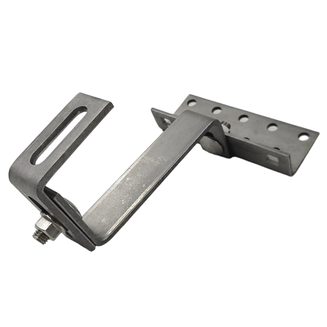 Takkrok Vario typ 4-5-5 Justerbar, rostfritt stål H17/1.4016, med måtten 145x30x5/5mm/4mm med M10-hål för profil till solcellssystem.