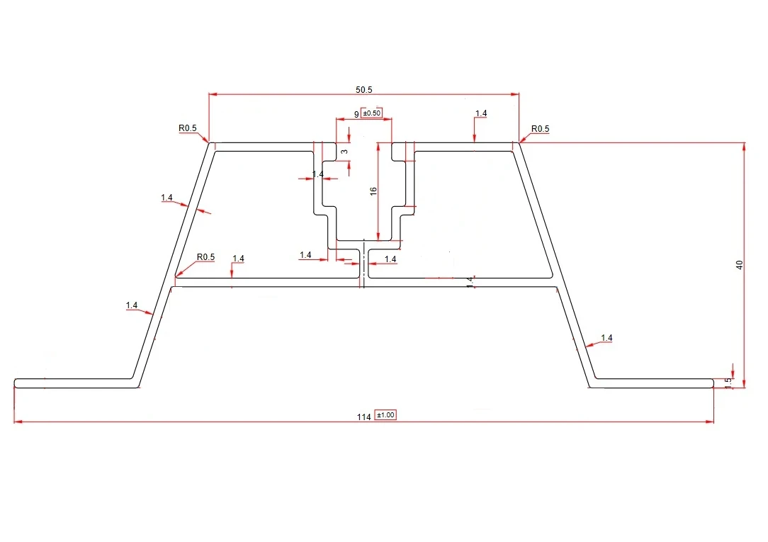 Aluminium 6060 trapetsformad takprofil för plåttak, 330x40 mm, för solcellsmoduler.