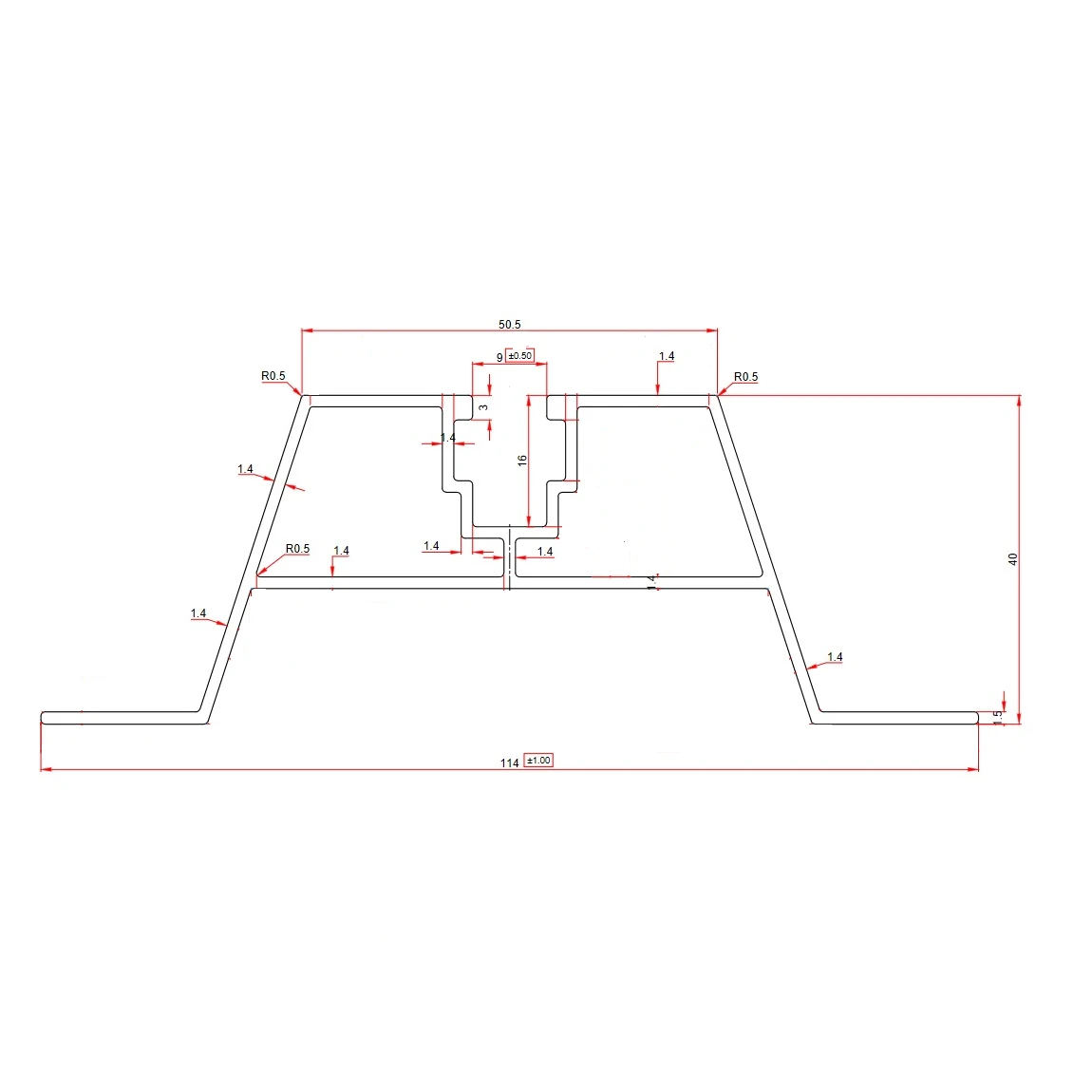 Aluminium 6060 trapetsprofil för metalltak, 600x40 mm, för solcellsmoduler.