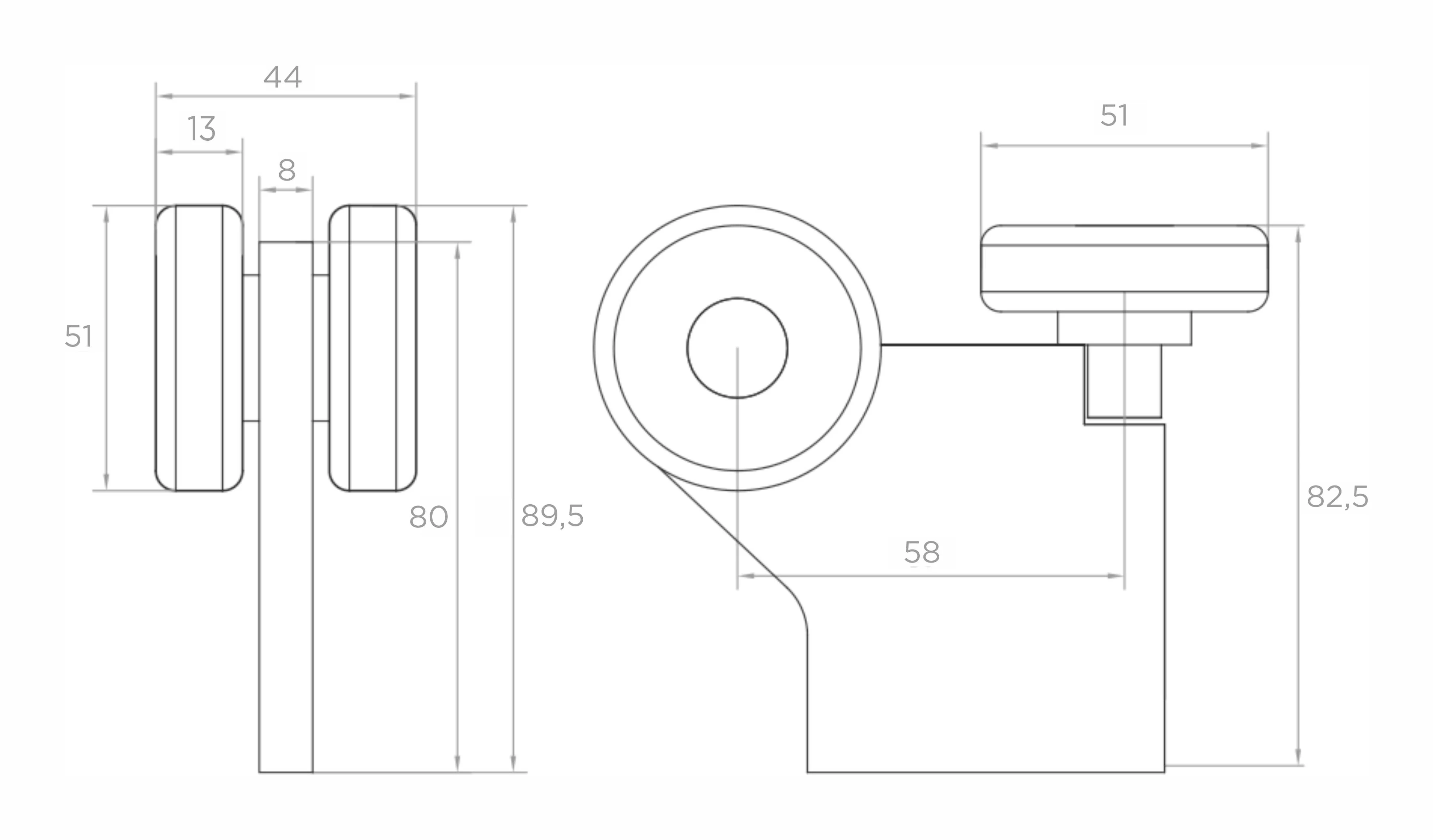 - Bärande hjul (stål): 2 st. – diameter 51 mm, bredd 13 mm
