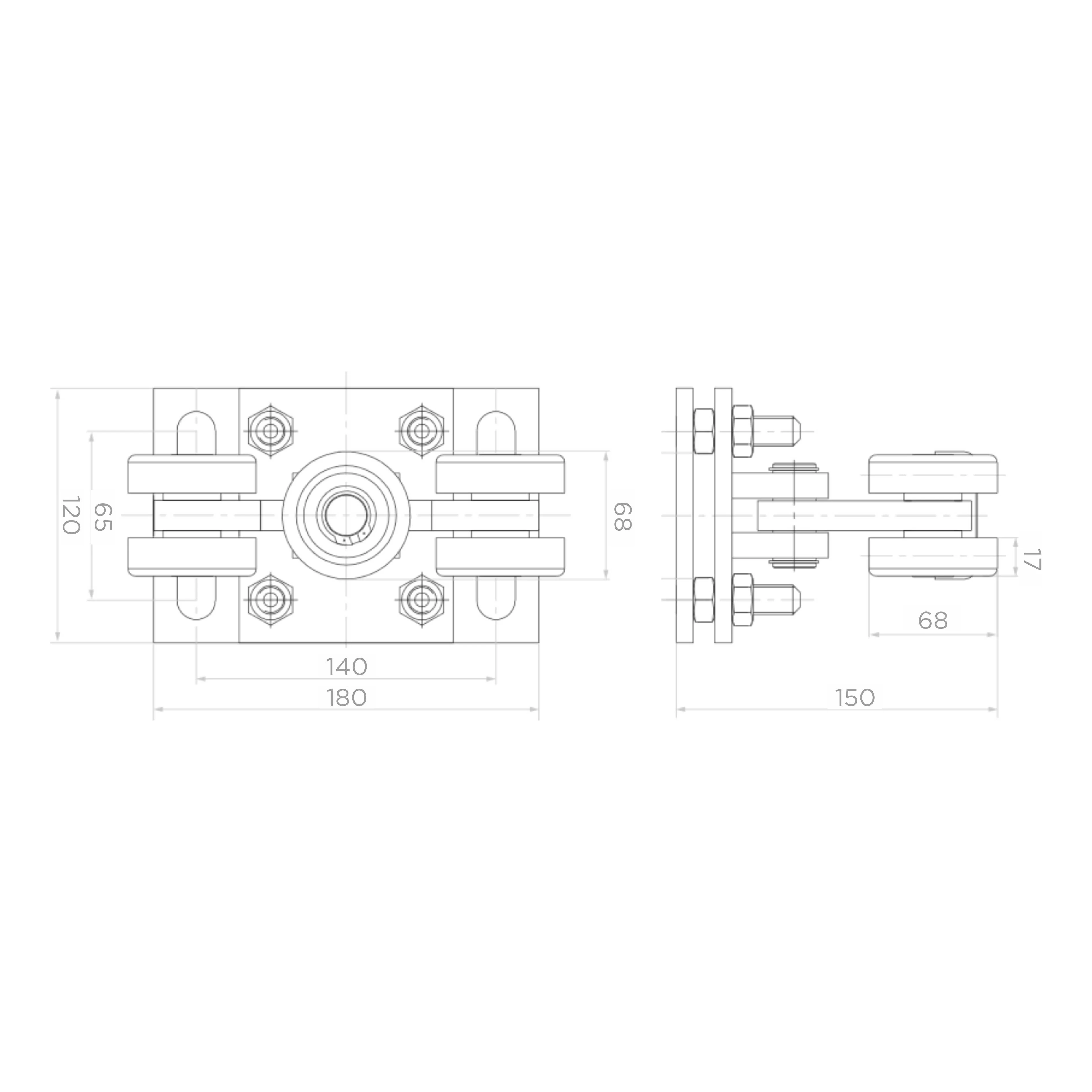 - Påkörningshållare – 1 st – stålhållare med två monteringshål och gummibuffert, kompatibel med skena 80×80×5 mm samt 70×70×4 mm