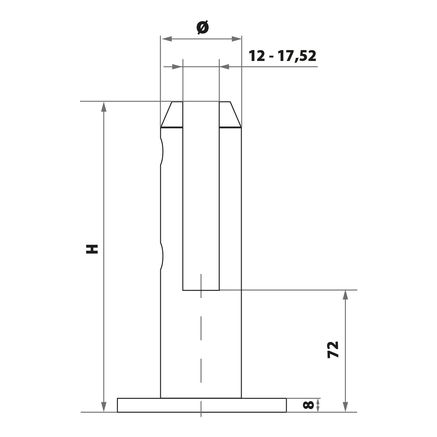 Vertikal spigot-hållare för glas 12-17,52 mm fi 48 mm H=182 mm AISI 304 satin