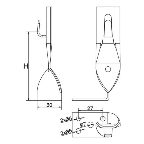 Vinkelfäste med vridklämma H=70 mm är en pålitlig komponent för åskledarsystem, utformad för att leda åsktråd på olika typer av underlag. Tack vare sin robusta konstruktion i galvaniserat stål ger den hållbar och säker montering av rund ledare med diameter Ø8–10 mm.