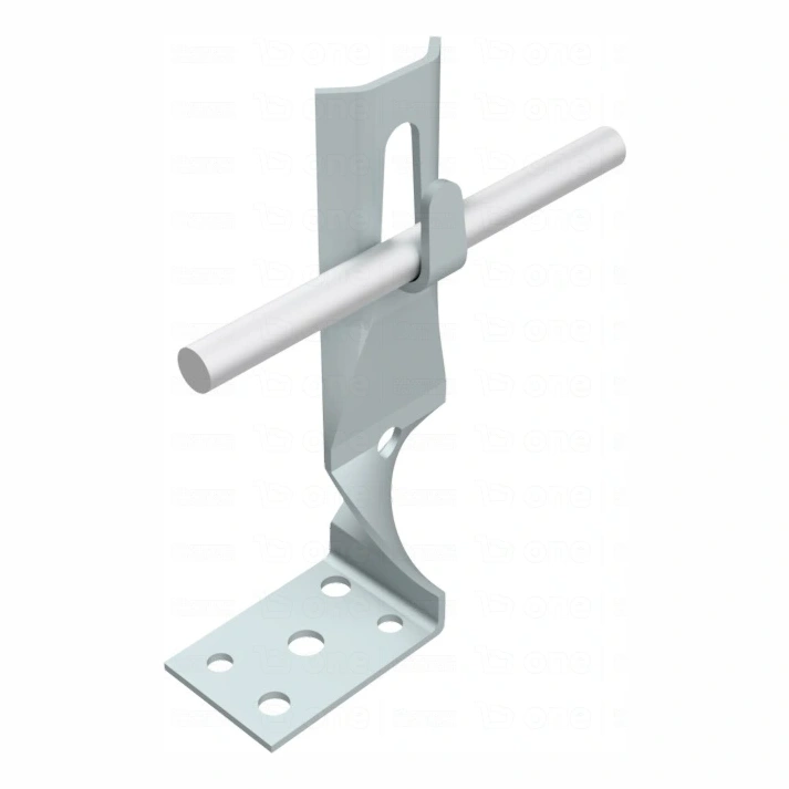 Universell användning. Fästet är avsett för montering på tak och väggar av olika material — murade, trä, plåttak, takpapp eller papp. Montering på underlaget utförs med skruvar, pluggar eller nitar, vilket ger full frihet att välja metod beroende på förhållandena på objektet.