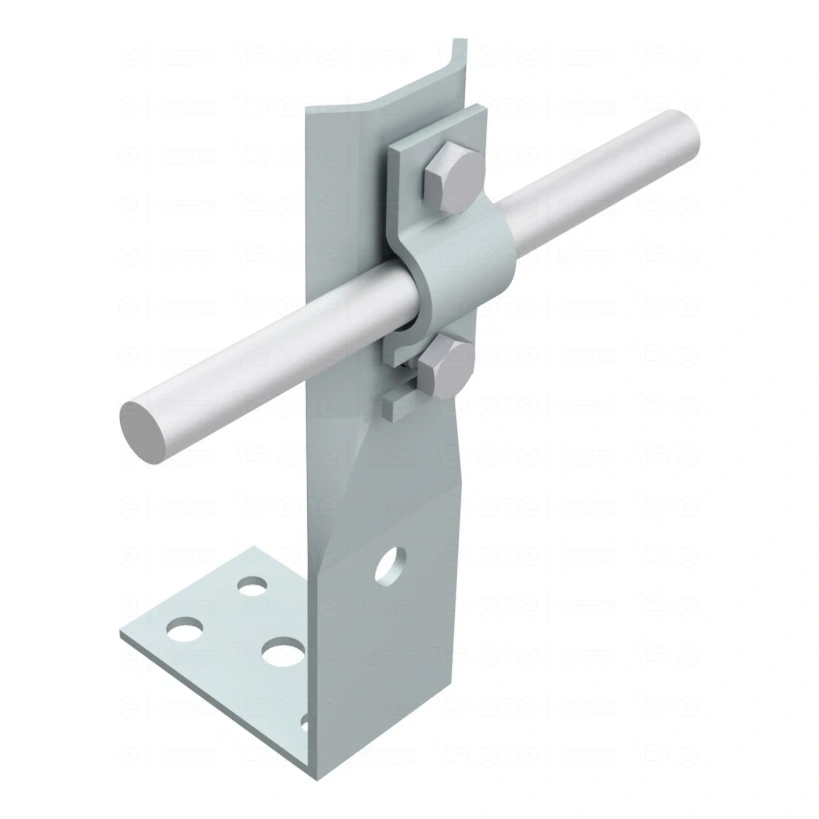 Fästet monteras på underlaget med skruvar, expansionsplugg eller nitar – tack vare plåten med monteringshål är installationen snabb och säker. Vinkelkonstruktionen säkerställer stabil ledning av åskledaren på lämpligt avstånd från tak- eller väggytan.